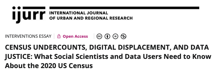 Jason R. Jurjevich. “Census Undercounts, Digital Displacement, and Data Justice: What Social Scientists and Data Users Need to Know About the 2020 US Census." International Journal of Urban and Regional Research (IJURR). DOI: 10.1111/1468-2427.70069